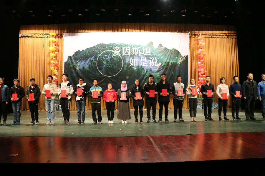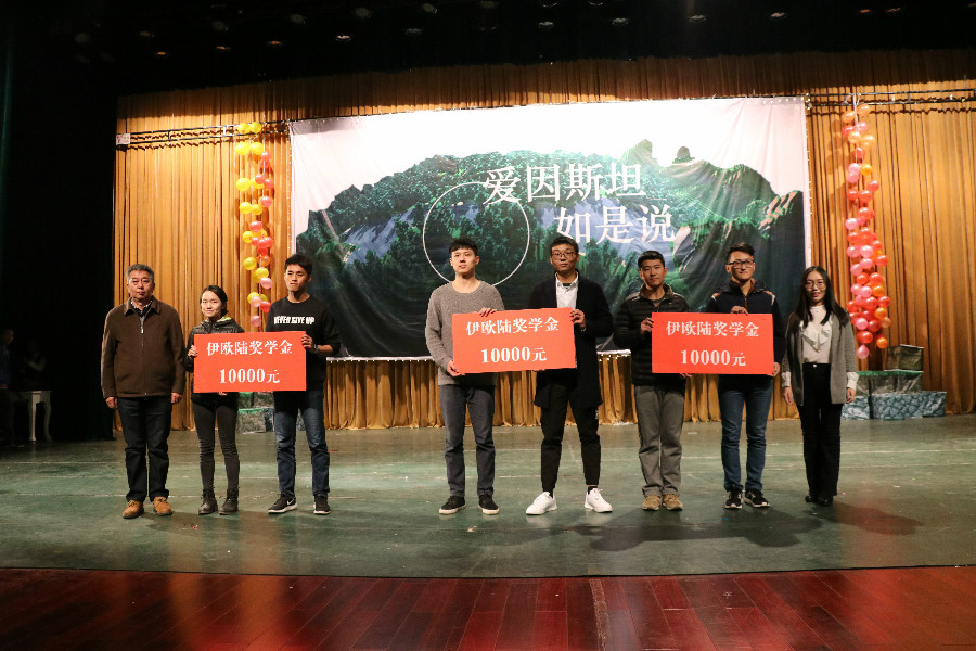 李建平在晚会致辞中表达了对2017级新同学的欢迎以及殷切期望,他希望同学们能够不忘初心,在科学的道路上砥砺前行。陈峰为2017级班主任郝晓涛、马衍东、王洪超颁发聘书,并与班主任为2017年心光校友助学金获奖学生颁奖。李建平与刘亚楠为获得伊欧陆奖学金同学颁奖,刘亚楠代表公司阐述了设立奖学金的初衷,表达了对山大物理学子的祝福与期望。