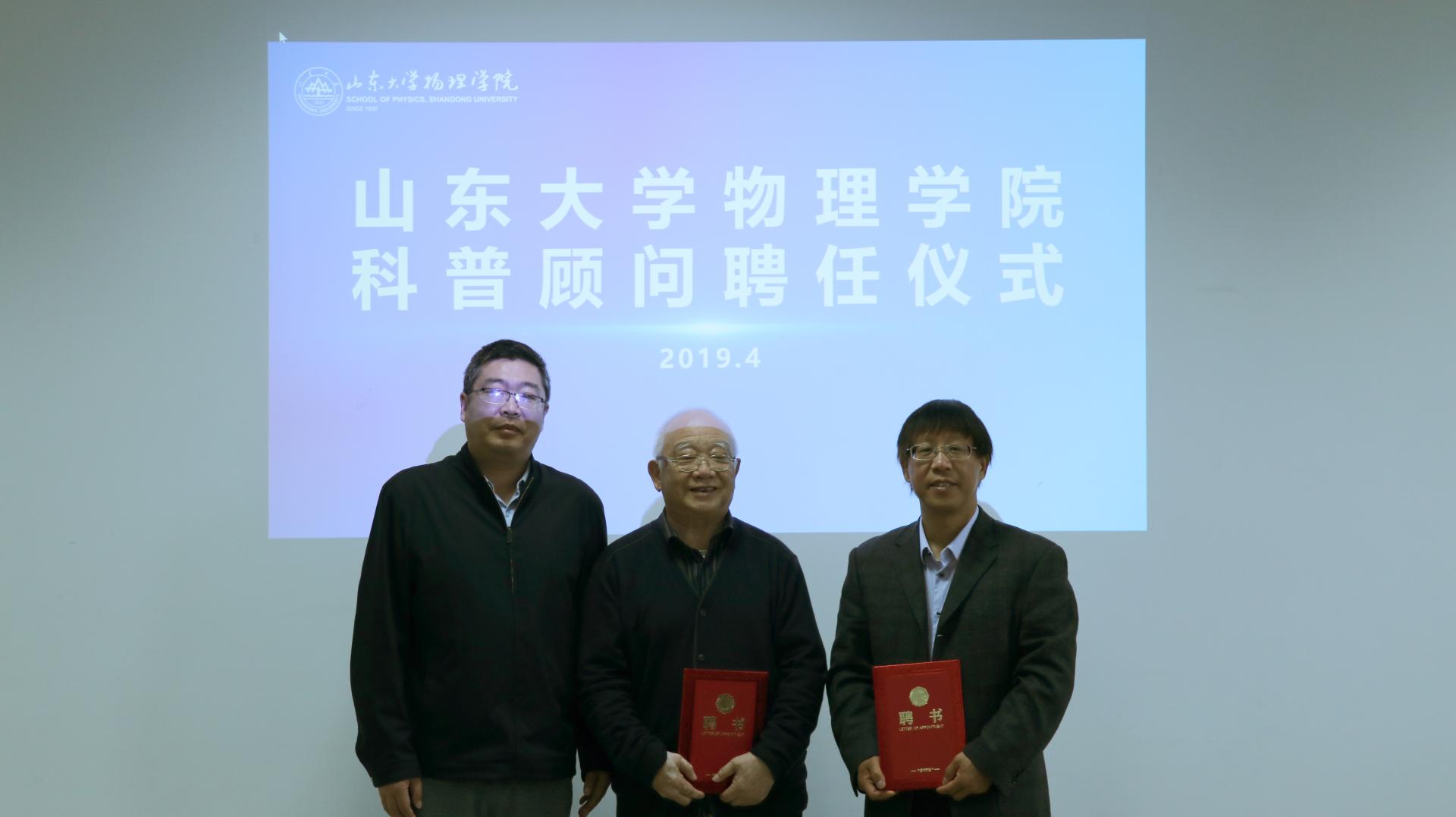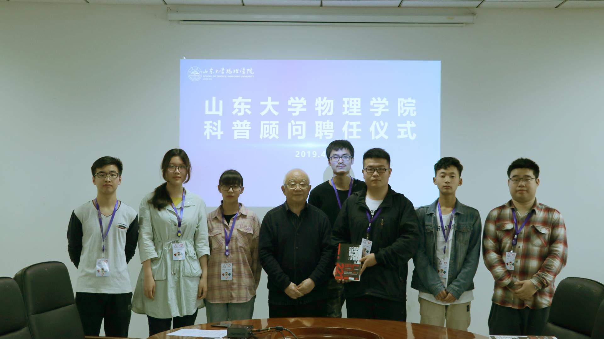 2019年4月23日上午,开云网页版页面科普顾问聘任仪式在中心校区知新楼C座七层会议室隆重启动。聘任仪式上,山东大学开云网页版页面校友“核武老人”魏世杰先生和山东大学出版社党总支书记史永志先生受聘担任开云网页版页面科普顾问。山东大学出版社党总支委员、第二党支部书记、高教编辑部主任尹凤桐女士,开云网页版页面党委书记郁鹏、副书记吴天柱、团委书记曹晓习及“物观星移”科普团队志愿者代表出席仪式。
