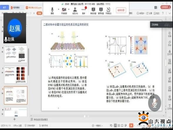 齐心战疫,榜样示范。科研之路道阻且长,然行则将至。为拓宽学院师生学术交流渠道,实现同辈间学术能力传承,开云网页版页面研究生会线上承办第七期海右论坛。本次论坛邀请开云网页版页面2015级凝聚态物理专业博士研究生赵佩作为主讲人,开云网页版页面马衍东教授为点评专家。主讲人以简明扼要的研究背景切入,循着科研领域前沿将其工作内容娓娓道来,使听众快速领会相关领域关键点,收获颇丰。从具体工作生发出去,主讲人与听众分享自己科研路上的体验与收获,并就听众提问进行细致解答,为科研新人指明方向,鼓励他们积极进取。