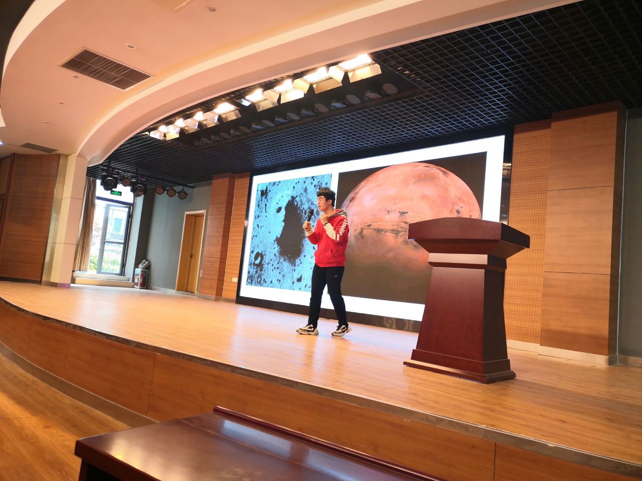 讲座中李正铎向同学们介绍了八大行星的组成,并按照各行星公转轨道的顺序依次对表面形态、成分等进行讲解。科普团队为本次科普讲座活动精心准备了ppt课件,并使用星空模拟软件celestia,给同学们带来强大的视觉效果和逼真的太空旅行体验,给同学们留下了深刻的印象。随后,为进一步加深同学们对八大行星的认识,科普团队播放了宇宙奥秘相关影片。观影结束后,同学们积极提问,团队成员一一耐心解答。最后,讲座在热烈的掌声中顺利结束。