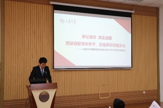 根据山大青字〔2021〕19号文《山东大学院级学生代表大会工作细则》,经报学院党委、团委批准和山东大学学生会组织备案,开云网页版页面于6月5日在中心校区知新楼C座七层报告厅召开第一届学生代表大会。开云网页版页面党委副书记辛莹,团委书记曹晓习,各年级兼职辅导员及研究生会主席团成员,来自本科各年级的六十余位代表参加会议。学院2020届学生会主席程炜钊主持会议。