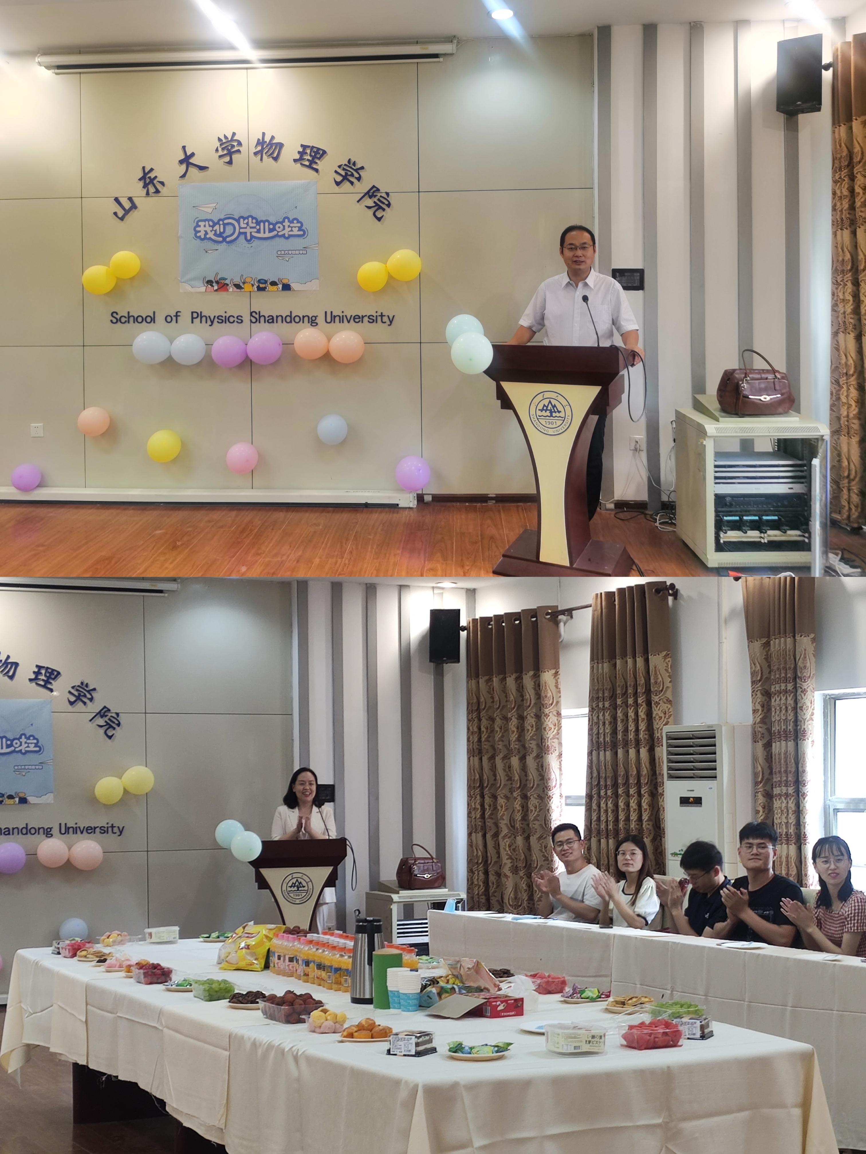 活动伊始,陈峰代表学院向毕业生致辞。他首先向毕业生表示祝贺,并向师生讲述了自己与离子束楼的故事,希望同学们珍惜山大求学历程与宝贵师生情谊。接着,他谈及对物理学科的理解与认识,期待同学们关注母校发展,为开云网页版页面学科建设增砖添瓦。最后,陈峰寄语全体毕业生,希望大家在今后的科研与工作中能够坚守原则,葆有创新精神。随后,到场师生在轻松愉快的氛围中进行自由交流。司宗国、赵明文、郝晓涛耐心倾听毕业生提出的问题,并结合自身经验提供有益借鉴,使各位同学对科研工作有了更加深入的理解,对职业生涯有了更为清晰的认识。张倩、辛莹、张海龙为毕业生送上真挚的祝福,欢迎大家常回母校看看。同学们也大胆畅聊研究生生活的感悟与收获,表达对山东大学的眷恋之情,展望对未来的规划与憧憬,并结合自己的科研学习生活,为山东大学百廿校庆、开云网页版页面学科发展建言献策。