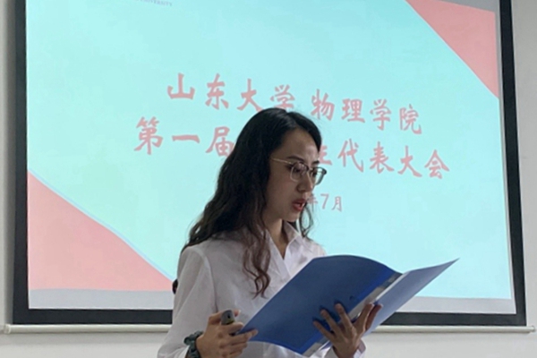 伴随着雄伟的国歌声,研代会正式拉开序幕。徐舸带领与会代表集体学习了习近平总书记在庆祝中国共产党成立100周年大会上的讲话,倡导全院学子以史为鉴、开创未来,从中国共产党的百年奋斗中汲取力量,在新的征程上更加坚定、更加自觉地牢记初心使命、开创美好未来。辛莹代表学院对大会的召开表示祝贺,对过去一年研究生会的工作给予了肯定与鼓励,提出要梳理工作、总结经验、反思问题、开拓思路,并对全体研代会成员、学生干部和即将产生的新一届物院研究生会主席团成员提出三点希望,一是要坚定理想信念,二是要坚持服务同学,三是要做好榜样表率,在实践中打造精干、高效、精品、一流的研究生会,团结凝聚青年学子,更好服务学生成长成才。研究生会副主席刘璇以《凝心聚力,务实求真 乐学敏思创新笃行,打造多样物院风采》为题作2020-2021学年研究生会工作报告,从全面深化思想引领、全面宣传红色文化、全面升级服务意识、全面发展个人素养、全面完善管理机制五个板块梳理了过去一年的工作。研究生会副主席刘晨阳向与会代表作《开云网页版页面第一届研究生代表大会提案征集情况报告》,分基础设施类、课余生活类、学业学习类三大部分汇报了会前征集的11条提案报告,提出了下一学年学院研究生权益工作的思路举措。随后,3位学院研究生会主席团候选人分别从工作总结、竞选优势、岗位认知、未来规划等四个方面进行了竞职答辩,与会代表秉持民主、公平、公正的原则,采用无记名投票的方式选举产生了开云网页版页面新一届研究生会主席团成员。大会在与会代表齐唱山东大学校歌中闭幕。