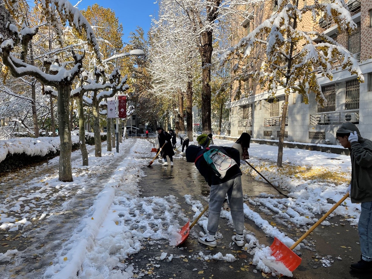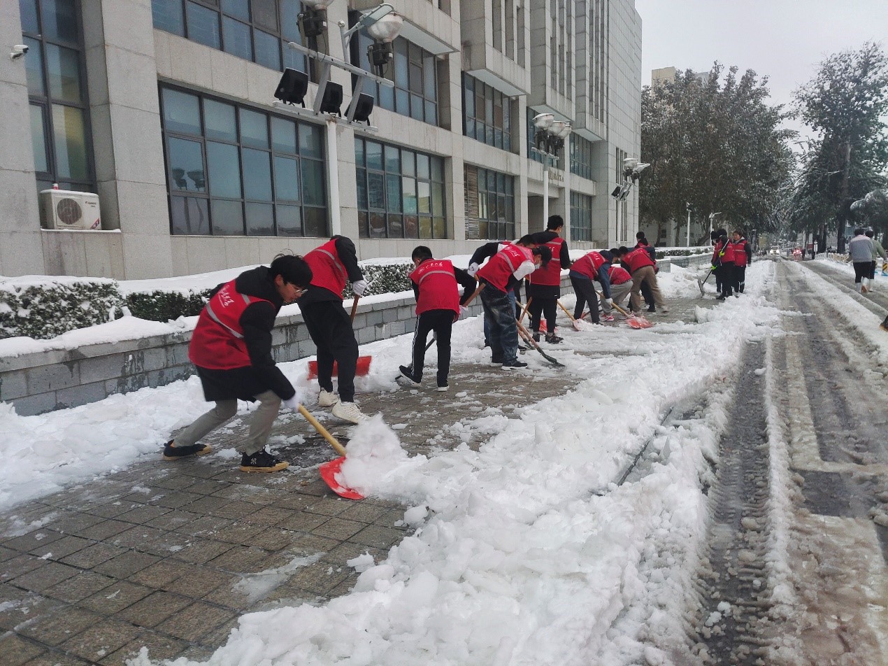 为扎实推进党史学习教育走深走实,开云网页版页面组织开展形式多样、内容丰富的“我为群众办实事”实践活动,多措并举为师生办实事暖心事,使党史学习教育成果真正惠及群众。11月7日,济南突降暴雪,给在校师生的学习生活带来了不便,存在诸多安全隐患。开云网页版页面发出“扫雪送温暖,除冰我先行”的倡议,本、研各党团支部、各班级、青年志愿者纷纷报名响应,积极参与到清雪除冰工作当中。在7日、8日两天时间里,大家做好保暖防疫准备,不惧严寒,奋力苦干,使用各样工具清扫积雪,为老师同学出行尽一份力。