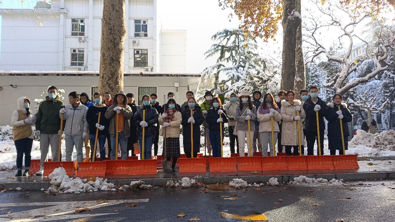 室外的低温拦不住同学们扫雪的热情,寒风的凛冽遮不住一颗颗火热赤子之心。作为先锋模范,党团骨干迎难而上,带领大家团结协作、奋勇争先,圆满完成了本次清雪除冰活动,展现了物院学子积极向上的良好风貌和责任担当,彰显了物院学子热心奉献的志愿精神与吃苦耐劳的优秀品格。