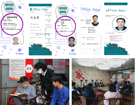 Office Hour师生交流活动,每次为学院师生提供2个小时的“专属时光”,活动过程中,既有关于凝聚态、原子分子、光学与光电、理论物理、交叉科学等专业方面的学术问题交流,又有关于本科生是否要参与科研活动、怎样平衡自己的学习与科研、如何找寻自己的学科兴趣点等问题的探讨,通过“教师+学生”的答疑解惑与“学生+学生”的头脑风暴,帮助物院学子进一步明确个人未来“三涯”规划、勾勒个人发展图景。