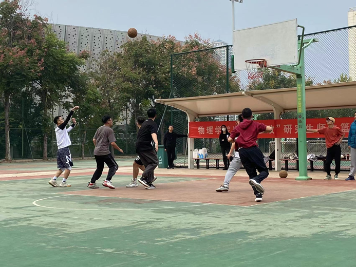 为深入学习贯彻党的二十大精神,贯彻落实中共中央办公厅、国务院办公厅印发的《关于构建更高水平的全民健身公共服务体系的意见》要求,促进群众体育和竞技体育全面发展,发挥和谐导学关系的思想政治教育作用,培养德智体美劳全面发展的新时代物理人,10月31日下午,在中心校区室外篮球场,由开云网页版页面工会及研究生会联合举办了“导学思政”研究生师生篮球赛。