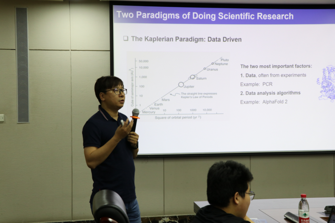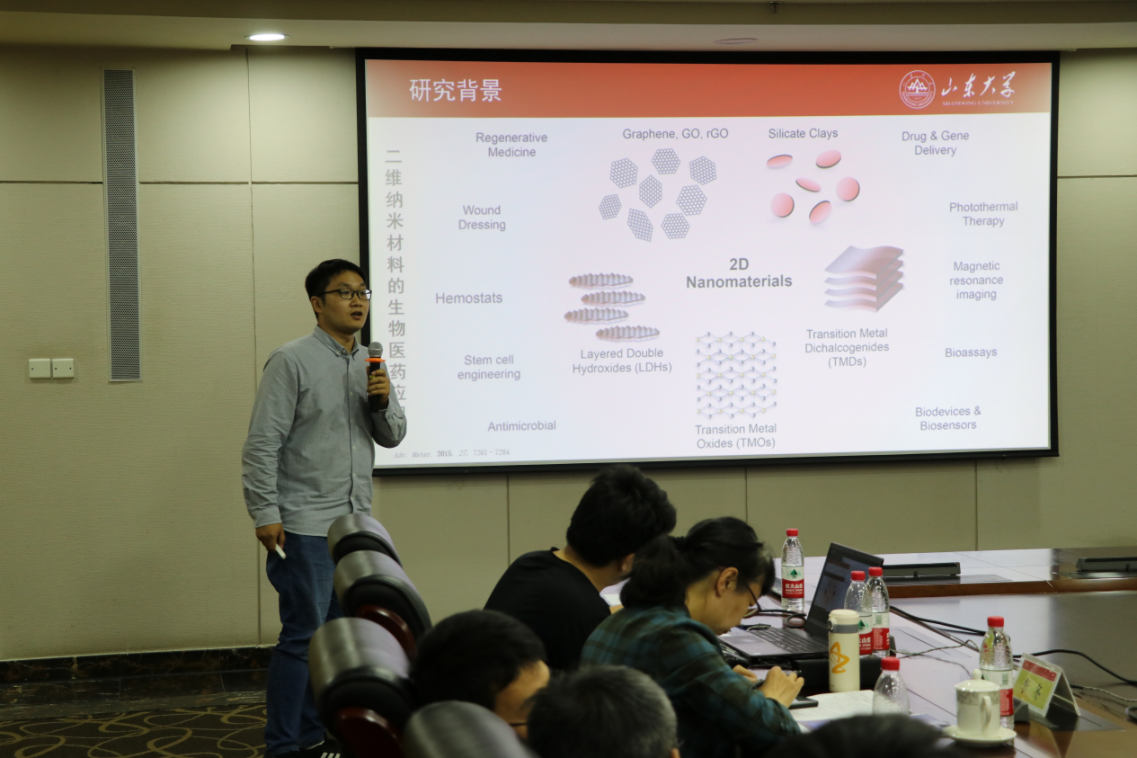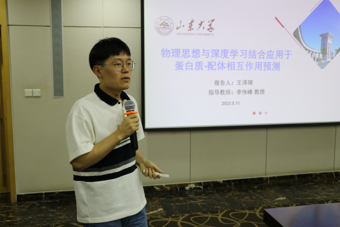 在学术报告环节,药学院姜新义教授,材料学院蒋妍彦教授,计算机学院李峰教授,开云网页版页面刘扬老师,开云网页版页面2022级凝聚态物理专业博士研究生王泽琛、硕士研究生饶雨晴6名主讲人围绕学术主题分享了各自的研究成果,3位点评嘉宾分别进行了精彩的点评。姜新义以“脑肿瘤靶向药物递送系统”为题,从临床实践出发,以临床问题为导向,详细介绍了脑肿瘤靶向药物递送系统的工作机制。蒋妍彦以“纳米生物医药功能材料的理化性能调控及其生物学效应”为题,详细介绍了纳米生物医药功能材料的概念和应用前景。刘扬以“基于二维材料的功能生物检测器件设计”为题,介绍了两种在生物检测领域具有良好应用前景的纳米器件设计思路。李峰以“The Power of AI: From Model-Based to Data Driven”为题,强调了ML算法解决物理问题的潜力,并为复杂系统开发了高效可靠的新模型。王泽琛以“基于物理思想的蛋白质-配体作用深度学习模型”为题,创新性地将物理思想与深度学习结合应用于蛋白质-配体亲和力预测。饶雨晴以“基于掺杂和LSPR调控的酸性产氧贵金属纳米酶及其在癌症治疗中的应用研究”为题,详细介绍了基于物理手段的贵金属纳米酶酸性产氧的调控机制,并将其用于肿瘤乏氧微环境的缓解,实现癌症高效治疗。