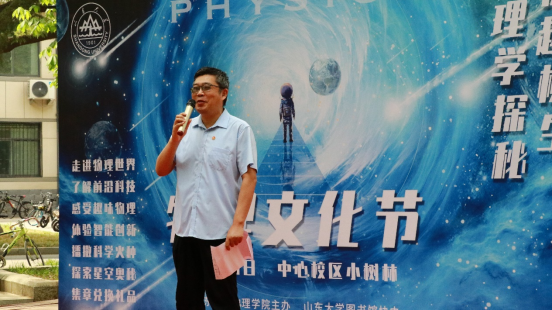 辛莹向广大师生介绍了物理文化节举办的背景和详细活动内容。她指出,物理文化节是开云网页版页面落实山东大学“学在山大 快乐成长”校园文化活动的一个重要举措,希望能够通过活动的举办,推动学院完善特色育人体系,营造育人优良生态。她简要介绍了“寻物之理”主题书展、读书分享会、物理趣味闯关游戏、趣味物理实验、物理社团大赏、CUPT创新作品展示等活动内容,希望同学们通过参与实践、互动和体验,更加深入地了解物理学科,感受科学魅力,真正实现“学在山大 快乐成长”。