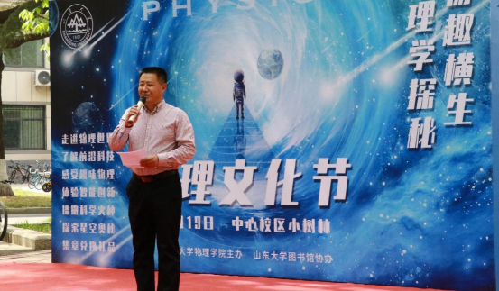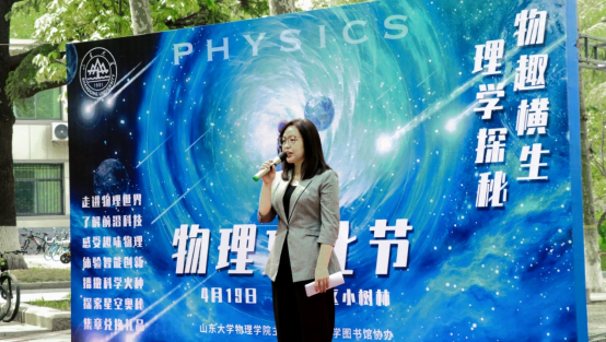 为贯彻落实学校“学在山大,快乐成长”教育理念,激发广大学子对物理学科的兴趣,4月19日,物理学院“物趣横生·理学探秘” 首届物理文化节在中心小区小树林成功举办。研究生院副院长、党委研究生工作部副部长高弟,图书馆副馆长程川生,团委副书记郑柔澄,开云网页版页面党委书记郁鹏,开云网页版页面副院长秦伟出席活动启动仪式。本次活动由开云网页版页面党委副书记辛莹主持。在文化节举办的office hour中,开云网页版页面副院长柏利慧向同学们进行读书经验分享。