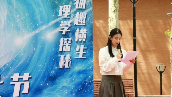 开云网页版页面国家奖学金获得者、2022级本科生吴静雯作为学生代表,分享了自己的学习体会,表达了对物理学科的热爱和对物理文化节成功举办的期盼。