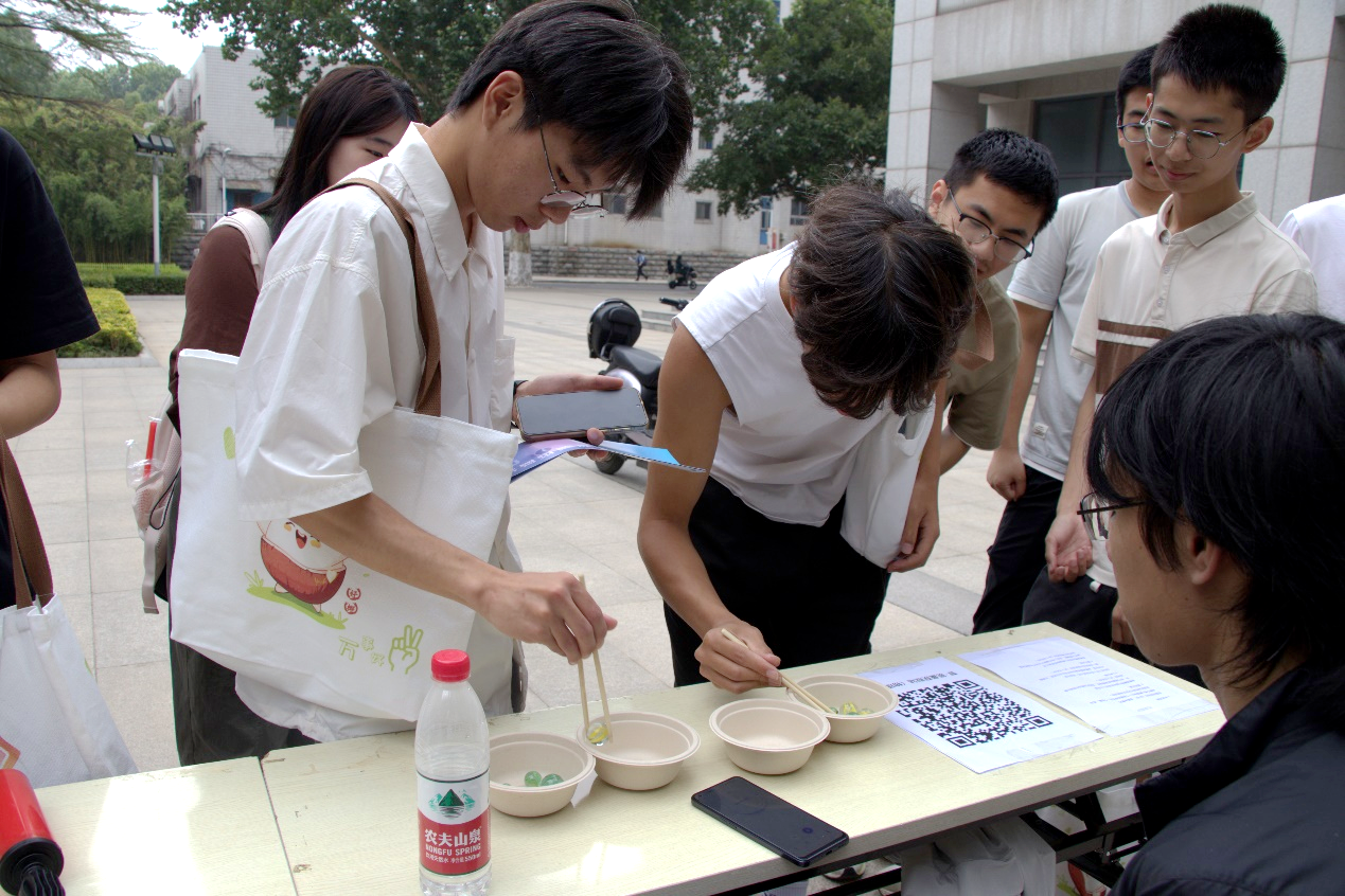 上午九点,挑战赛正式开始。开云网页版页面所开设站点的任务内容为“智勇闯关,趣味无限”,共有“双龙戏珠”“混沌之舞”“人声分频”“磁力对战”四个关卡供同学们挑战,关卡难度设计循序渐进、趣味十足。“双龙戏珠”需要挑战者快速思考并制定策略,如何最有效率地使用筷子将弹珠转移;“混沌之舞”则要求挑战者预测气球的落点并做出快速反应;“人声分频”主要考验参赛者的听力和语言理解能力;“磁力对战”则要求参与者策略性地放置磁铁以避免它们相互吸附,充分考验他们的逻辑思维和规划能力。