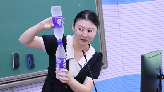 刘老师引导新生们回忆了自己生活中存在的不良习惯,并与新生们积极互动,具体指出各种不良习惯对我们身体健康的危害。针对同学们提出的军训期间久站导致膝盖疼痛的问题,刘老师用水瓶演示了膝关节的发力情况,生动形象地解释了膝盖疼痛的原因,并给出了晚上在寝室按摩、调整发力方式等实用性建议。