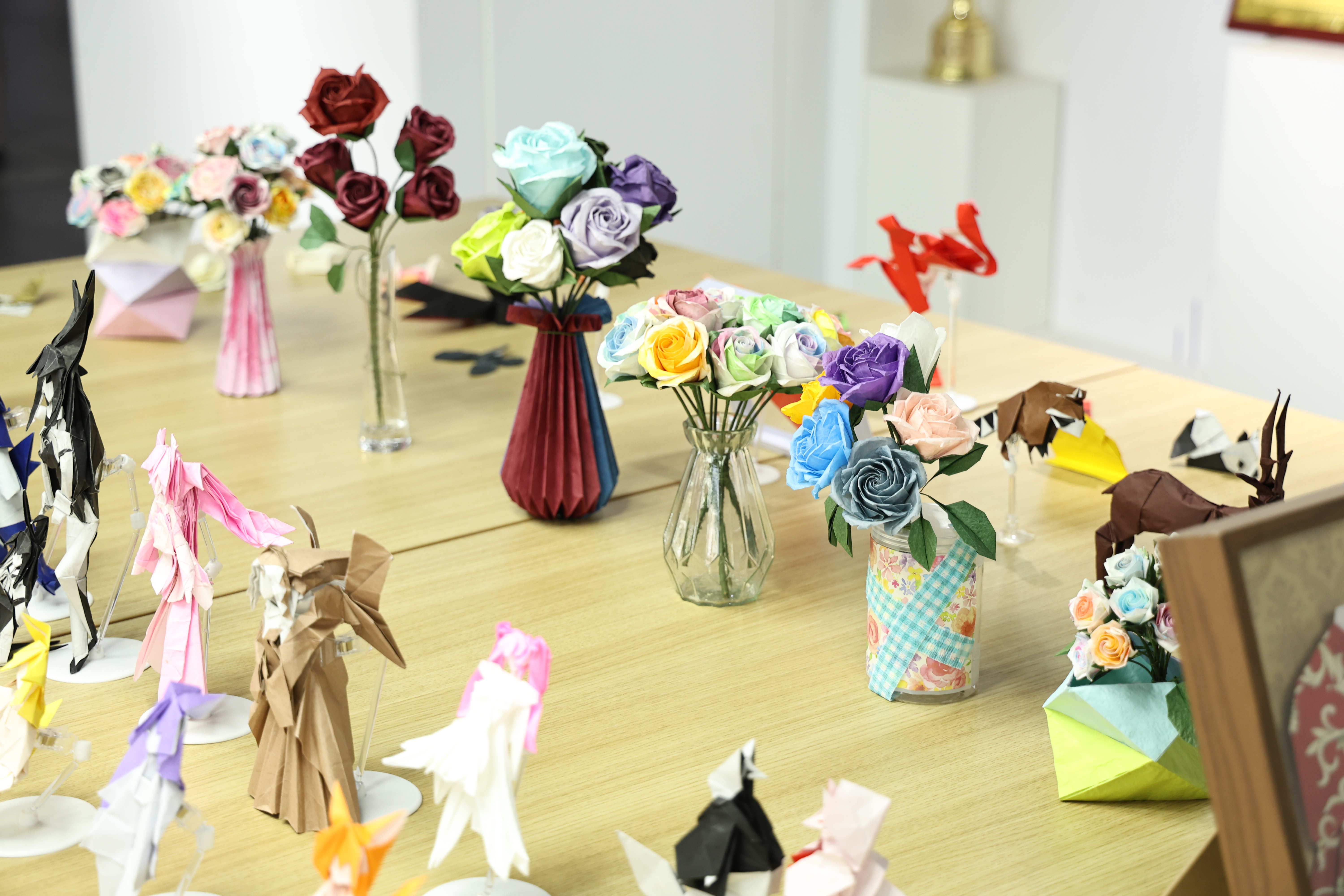 展览分为展示区、互动区和打卡区,展品涵盖现代折纸、镶嵌折纸、花球折纸等多种类型,内容涉及花卉、动物、人物等主题,通过场景化的布置,为观众呈现了一场别具匠心的春日艺术盛宴。