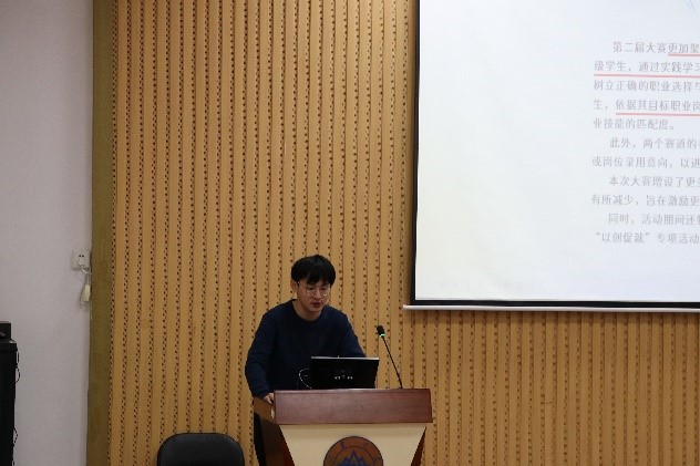 王炳楠,曾获大学生职业规划大赛全国金奖、中国国际互联网+大学生创业规划大赛全国金奖等多项荣誉。他就参赛材料的准备细节进行了深入而细致的讲解,充分向同学们说明了PPT等材料制作的重要性以及答辩过程中的核心技巧,让同学们受益匪浅。