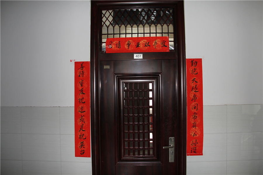 下午三点,评委们在征得宿管阿姨同意后,进入宿舍。认真检查每一个宿舍,仔细审视宿舍里的每一株花花草草,细致品读宿舍里的每一张字画,并询问同学们关于宿舍装饰的构想和心思,同学们也一一给大家介绍宿舍的特色,从门上装饰的设计意图,到帘布的各种色彩搭配,到桌上摆放的小盆景,新颖的创意和奇妙的构想让检查宿舍成为了一次欣赏、一次感受温馨、舒适的机会。大一的一些同学也跟随评委们参观其他宿舍,在参观他人宿舍的过程中探寻着其他宿舍的优点,在参观过程中学习成长。