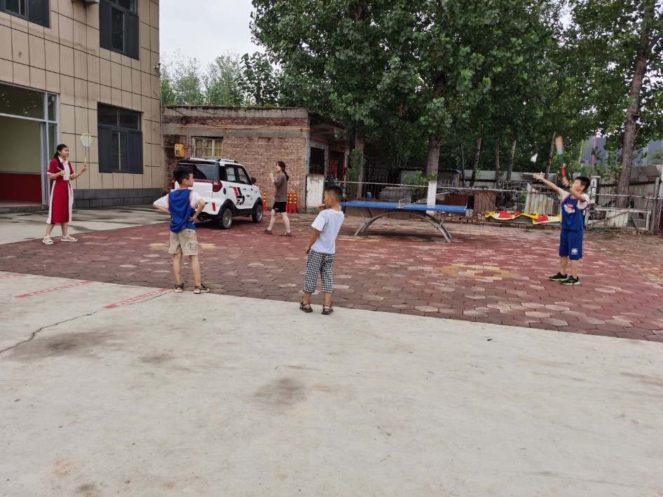 图 / 吴国镇同学正在和孩子们打羽毛球