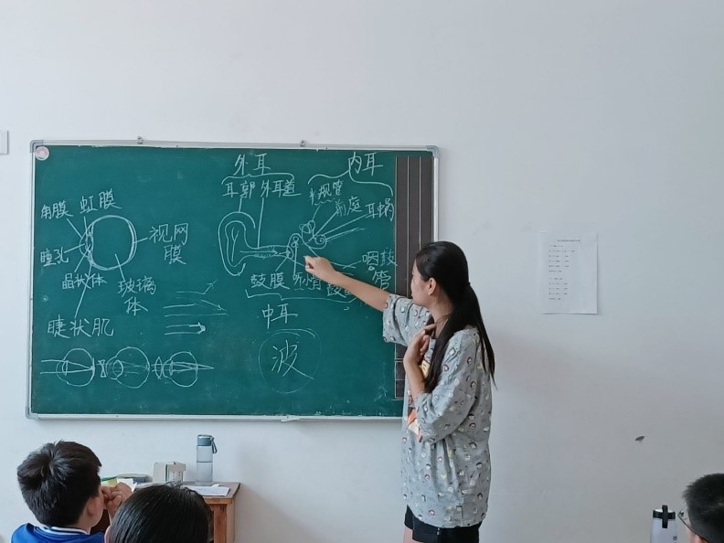 图 / 吴国镇同学现场画图讲解“眼睛和耳朵的结构”